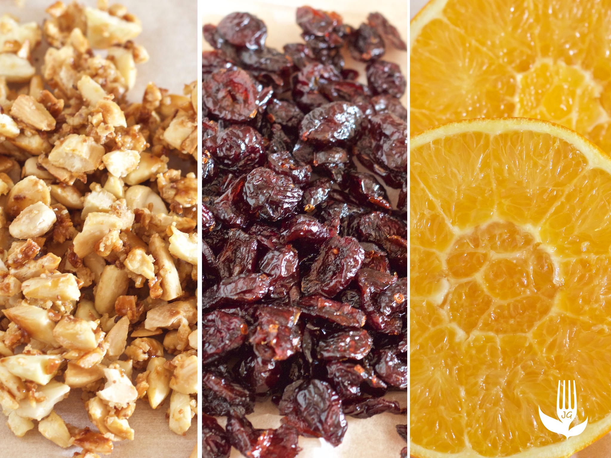 - 725g de fruits secs : 200g de raisins blonds, 200g abricots secs, 200g de pruneaux en petits morceaux, 125g de cranberries.