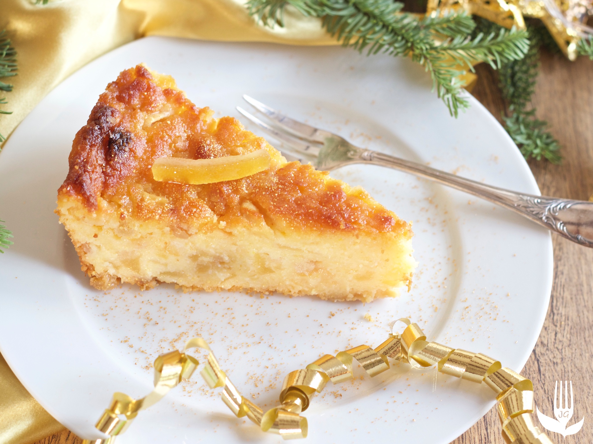 En Italie, la semoule de maïs ou polenta s’emploie en plats salés ou sucrés. Aujourd’hui, j’ai craqué pour un généreux gâteau de polenta aux pommes, raisins secs et écorces d’orange confite, que j’ai parfumé à la fleur d’oranger. Un vrai délice aux couleurs d’or pour les fêtes.